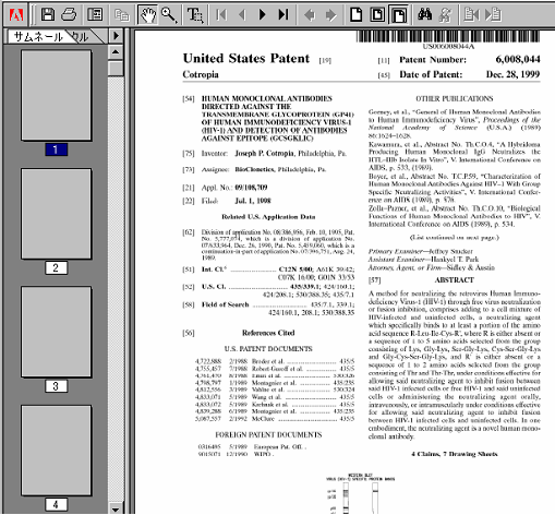 この例では1件目は19頁あり,1頁から順にpat2pdfサーバに取り込まれていきます。