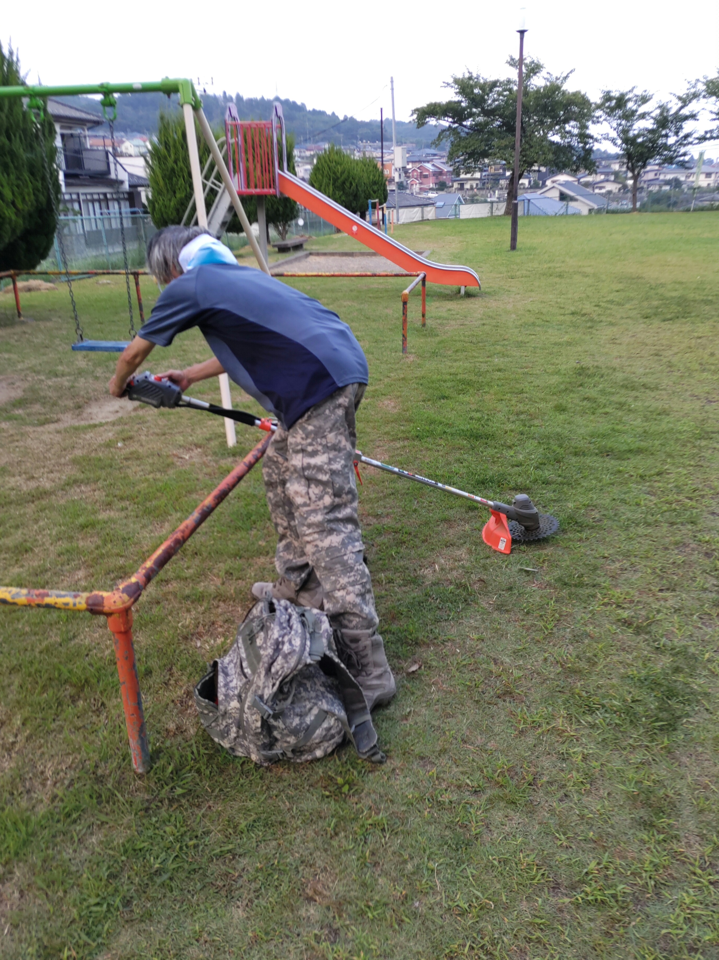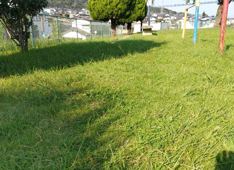 ・感想;ゴルフ場みたいにきれいになった。このような公園の肩掛け式は金属刃より、ロープ式がむらなくきれいに刈れる。