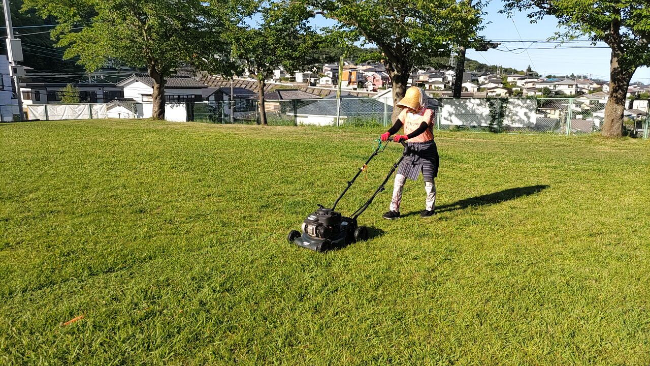 終わってきれいになった芝生を見ると達成感があり、楽しくやれた。