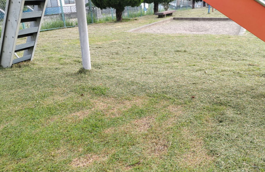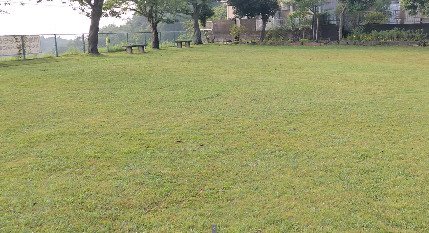 翌朝のきれいな芝生の第2公園。 子どもが虫刺されなく遊べます。